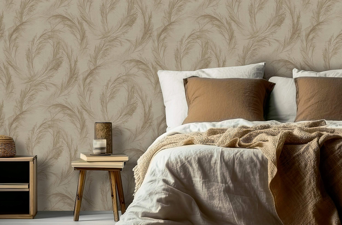 Цвет обоев в оттенке капучино придает помещению уют и теплоту, а ветки Voyage, ярко выраженные на фоне, добавляют элегантности и изысканности. Раппорт в 64 см позволяет легко сочетать обои между собой, создавая уникальный дизайн.