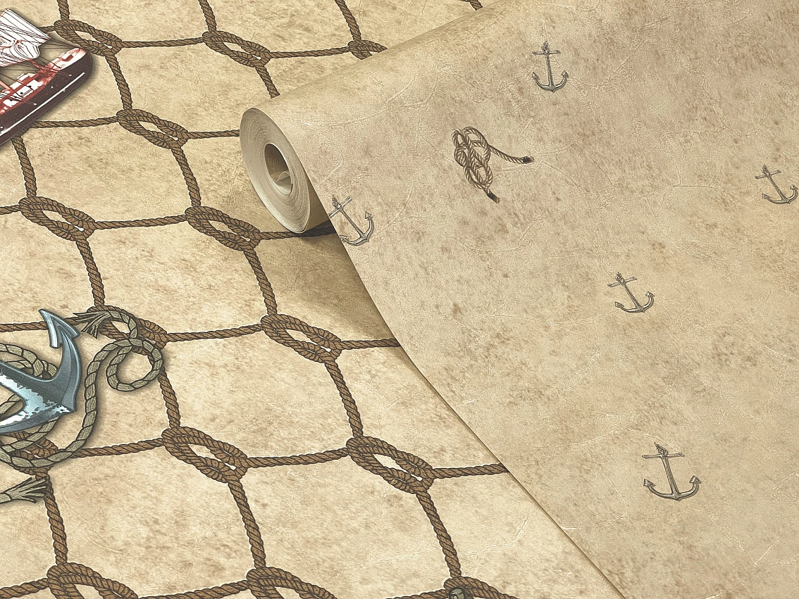 Обои Makario Jolly 3513-2 созданы для того, чтобы принести в ваш дом атмосферу радости и игривости. Их бежевый цвет и мотив якоря Jolly привнесут в интерьер нотку детского веселья и непосредственности.
